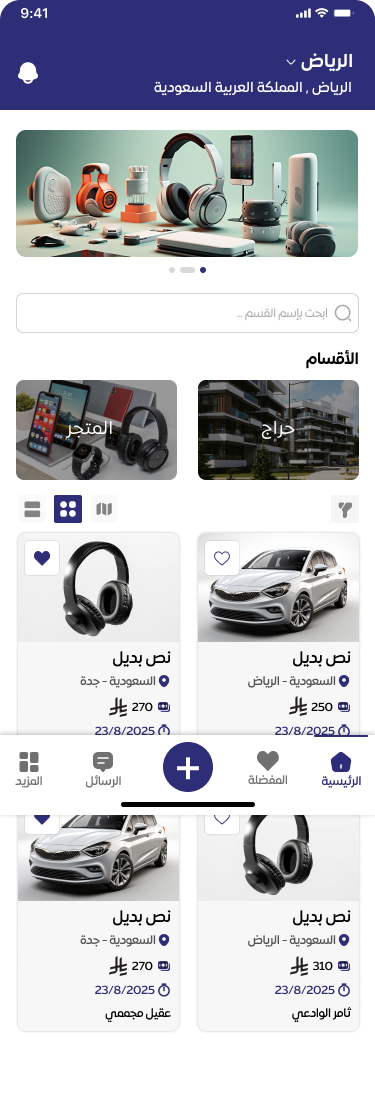 استكشف مجموعة واسعة من التصنيفات التي تشمل السيارات بمختلف أنواعها، العقارات من شقق وفلل وأراضي، التحف والمقتنيات النادرة، الفنون، الألعاب، وغيرها الكثير من المنتجات والخدمات.